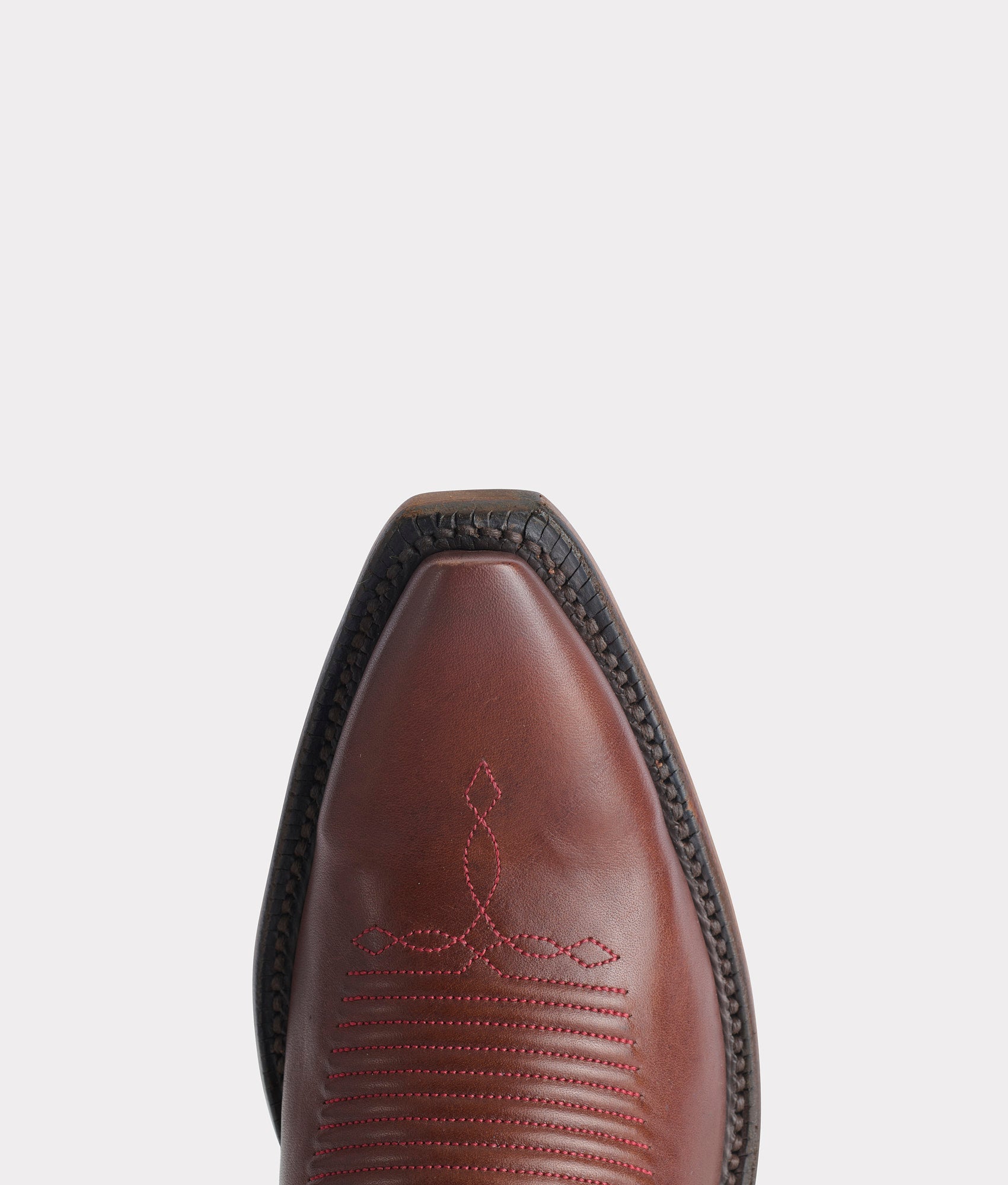 Inspired by eighth century folklore. the horseshoe is a symbol of luck and good fortune. Lucchese’s Beginner’s Luck takes poker table confidence to a new level. Red and black doesn’t just come in hearts and diamonds. but in size seven and eights ?C you’ll stay winning. A smoke-filled room is no match for the Lucky Shoe inlay. collar. and pull strap designs ?C these 9-inch-tall cow/goat quarters see right through the bull of a gamblin’ man. Our Lucchese artisans select and cut these rich bovine leathers by hand so you could hold the winning one. Whether you’re just starting out or maybe you’ve seen a thing or two – everyone needs a little luck. Handmade in Texas.