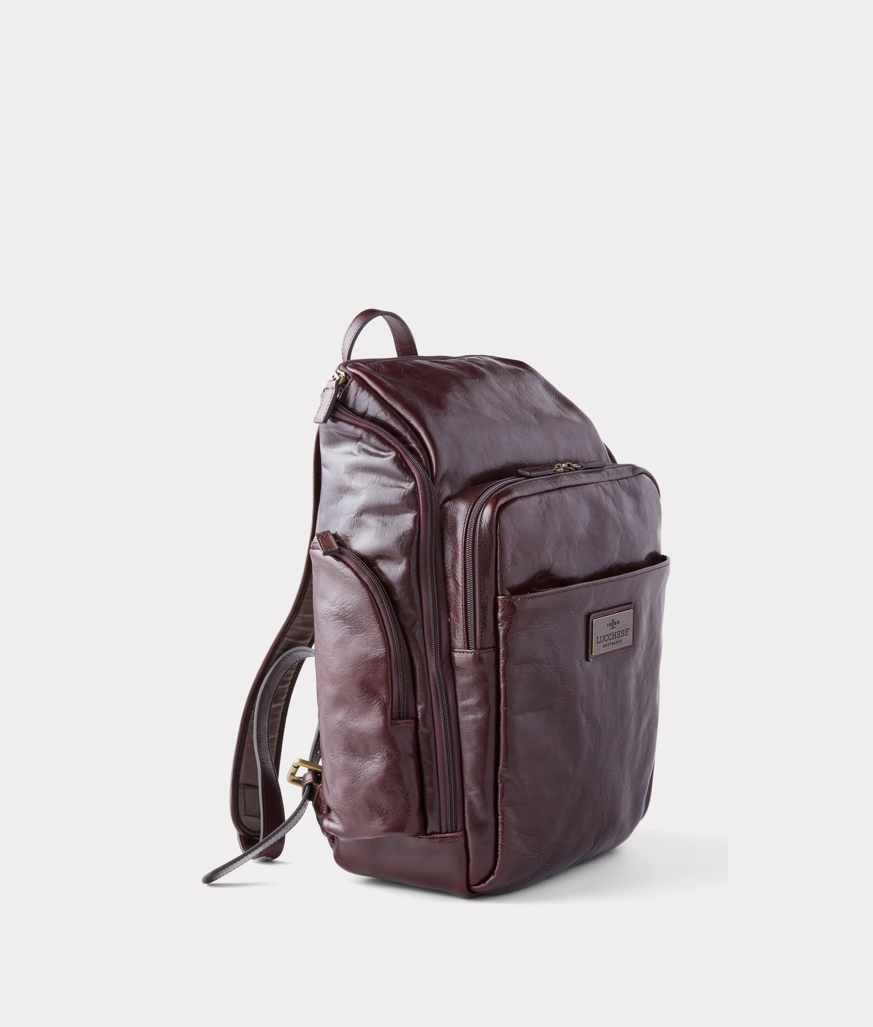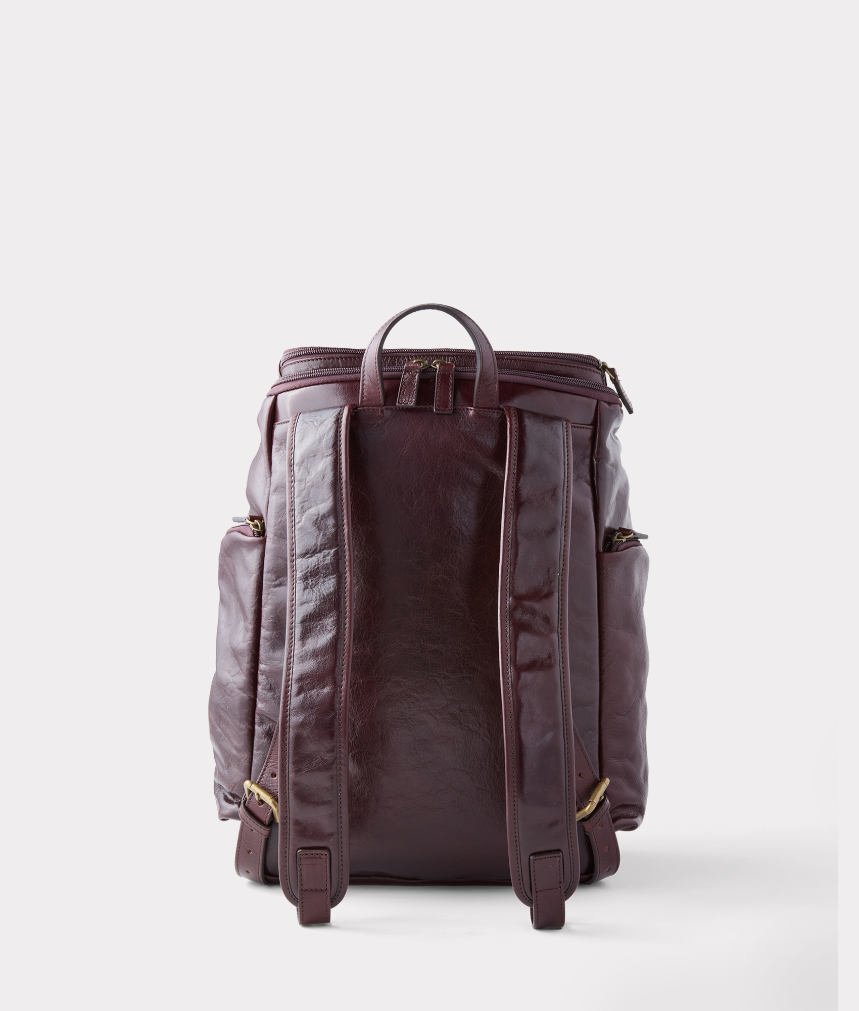 The Cosimo Backpack. named in honor of our second-generation bootmaker. exemplifies exquisite craftsmanship and timeless design. Constructed from Italian veg-tanned leather. this backpack boasts a rich. supple texture that develops a unique patine with age. Meticulously handcrafted in Italy. this piece showcases the attention to detail for the business and traveling man. The Cosimo Backpack combines robust functionality with sophisticated style. offering both durability and elegance for the discerning individual. Handmade in Italy.