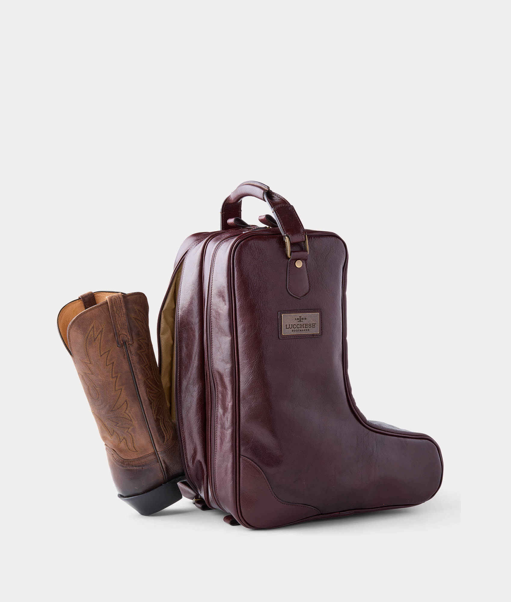 The Cosimo Boot Bag. named in honor of our second-generation bootmaker. examplifies exquisite craftsmanship and timeless design. Crafted from Italian veg-tanned leather. this refined boot bag offers a solution to carrying and transporting your favorite pair of Lucchese boots. Tailored to fit a single pair of Lucchese boots. this article with preserve the shape and itegrity of your lucky pair of boots. Handmade in Italy.