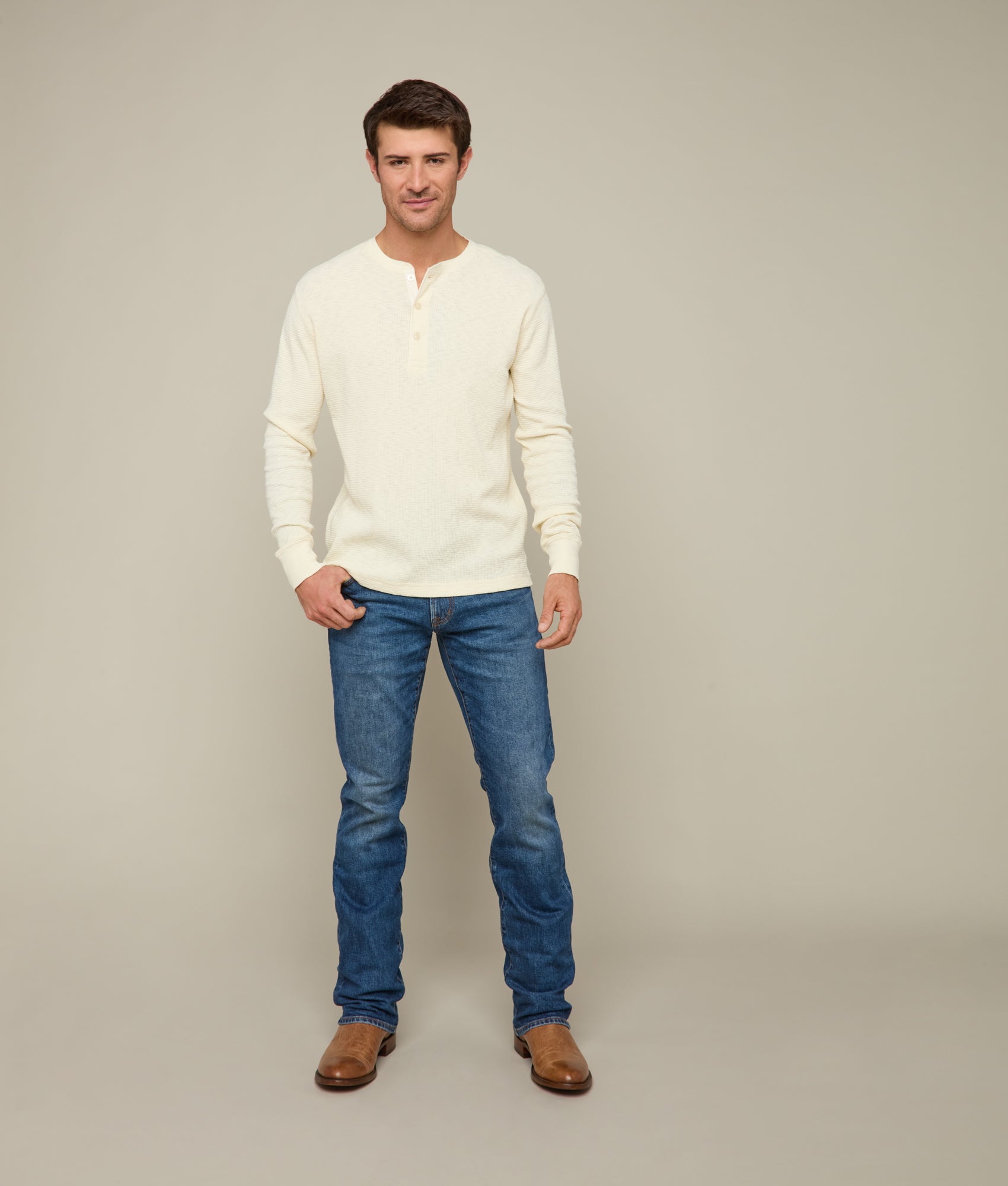 The epitome of casual comfort and luxury lies within the confines of the Dylan Waffle Henley. Fully made from Peruvian Pima Cotton. this henley takes casual elegance to new heights. The waffle texture adds a subtle depth to its classic design. while the henley neckline provides a touch of refinement. Perfect for layering or as a standalone style.