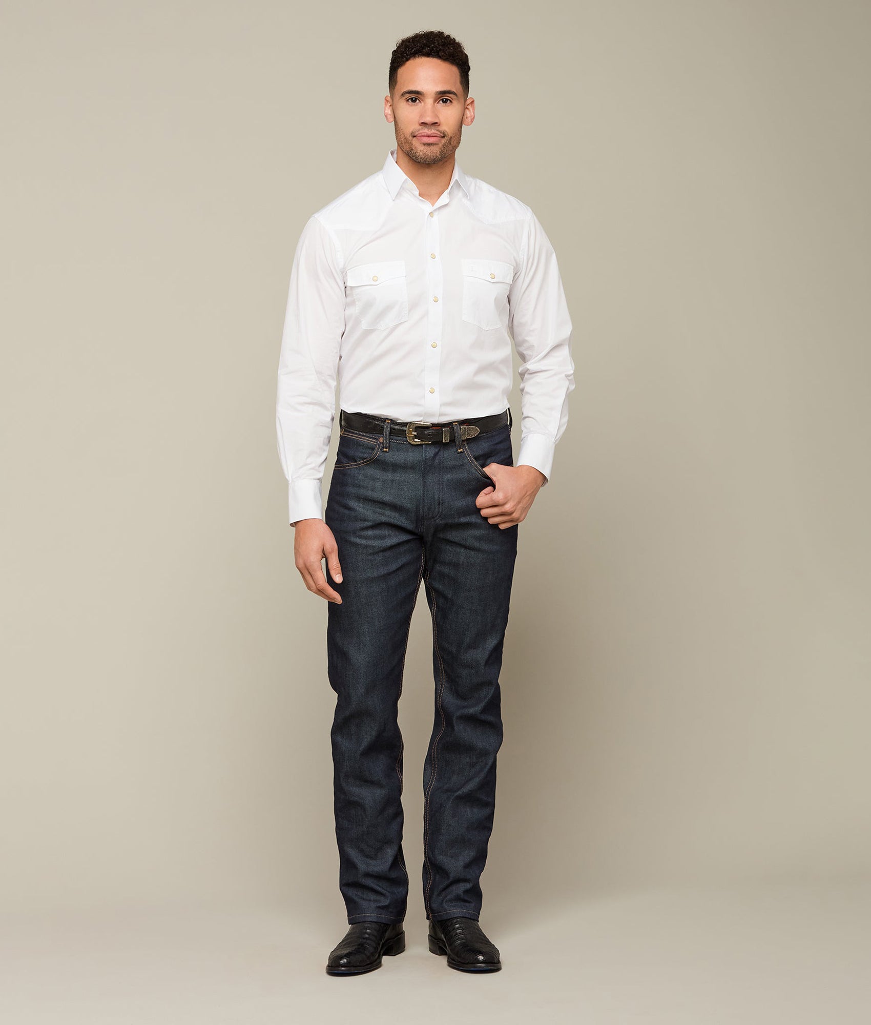 Named for our El Paso factory. this rugged. cotton Western shirt features a cowboy yoke in front and back with a subtle. embroidered mirrored-L emblem on the left pocket and lower placket. Classic cowboy fit.