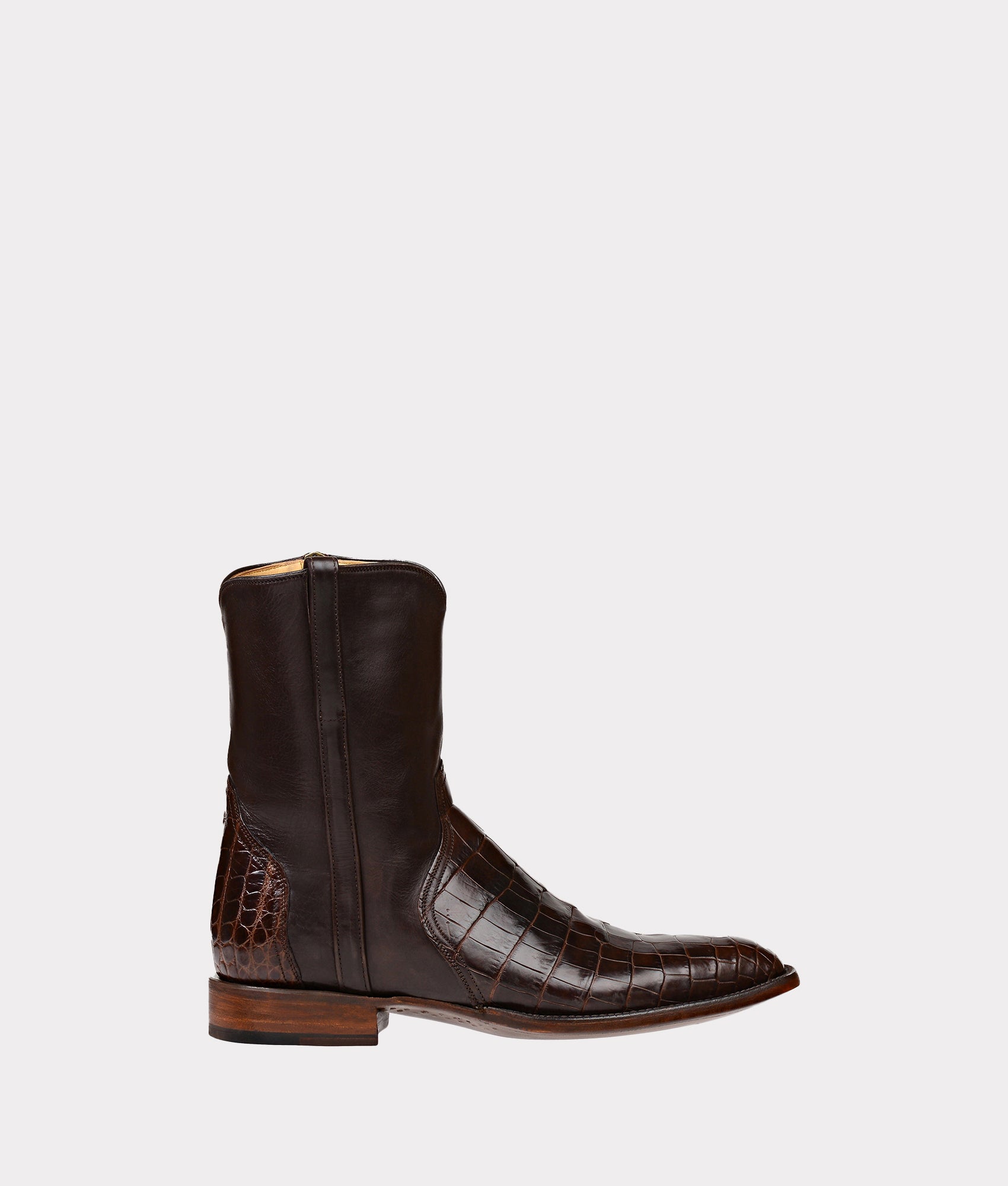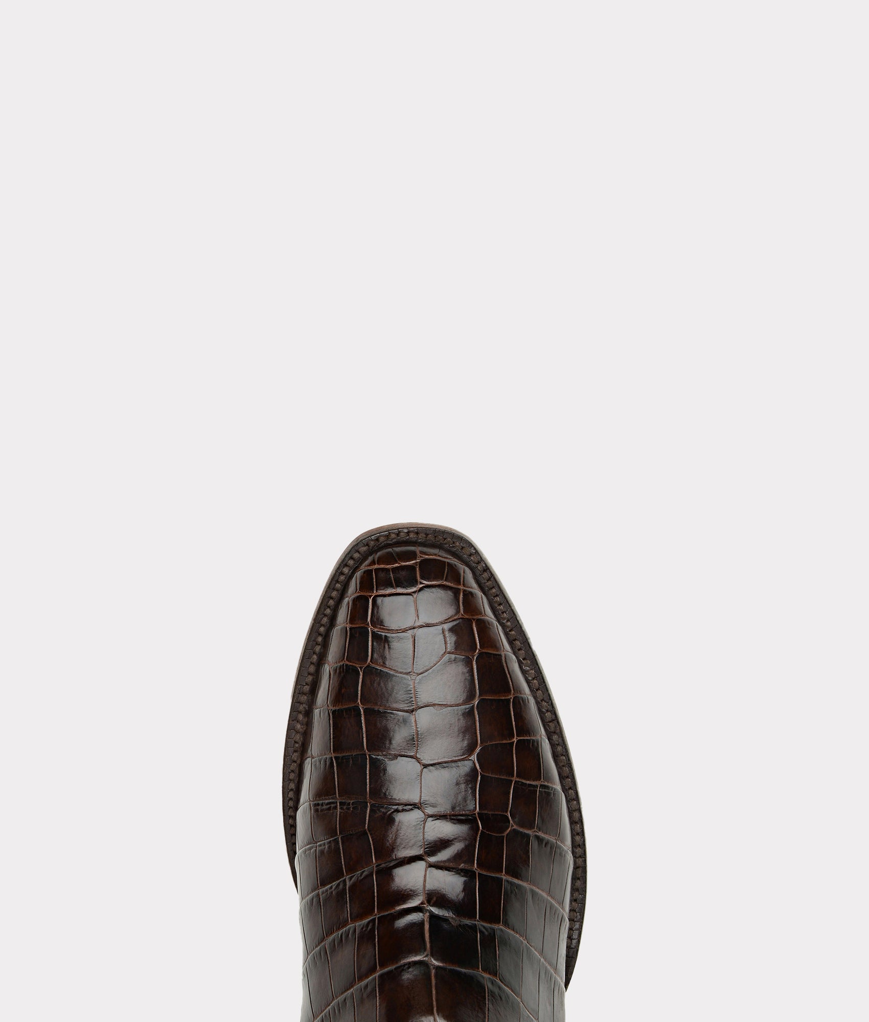 Elliot is an exotic Pony Matador handcrafted from the richest Nile Crocodile leather. A silhouette fashioned for a squire. this handsome dress boot makes a statement amongst the crowds. A side-zip and Torero side seam stitch give the eye a roadmap to the rest of your repertoire. Black tie ready. Cocktail ready. Handmade in Texas.