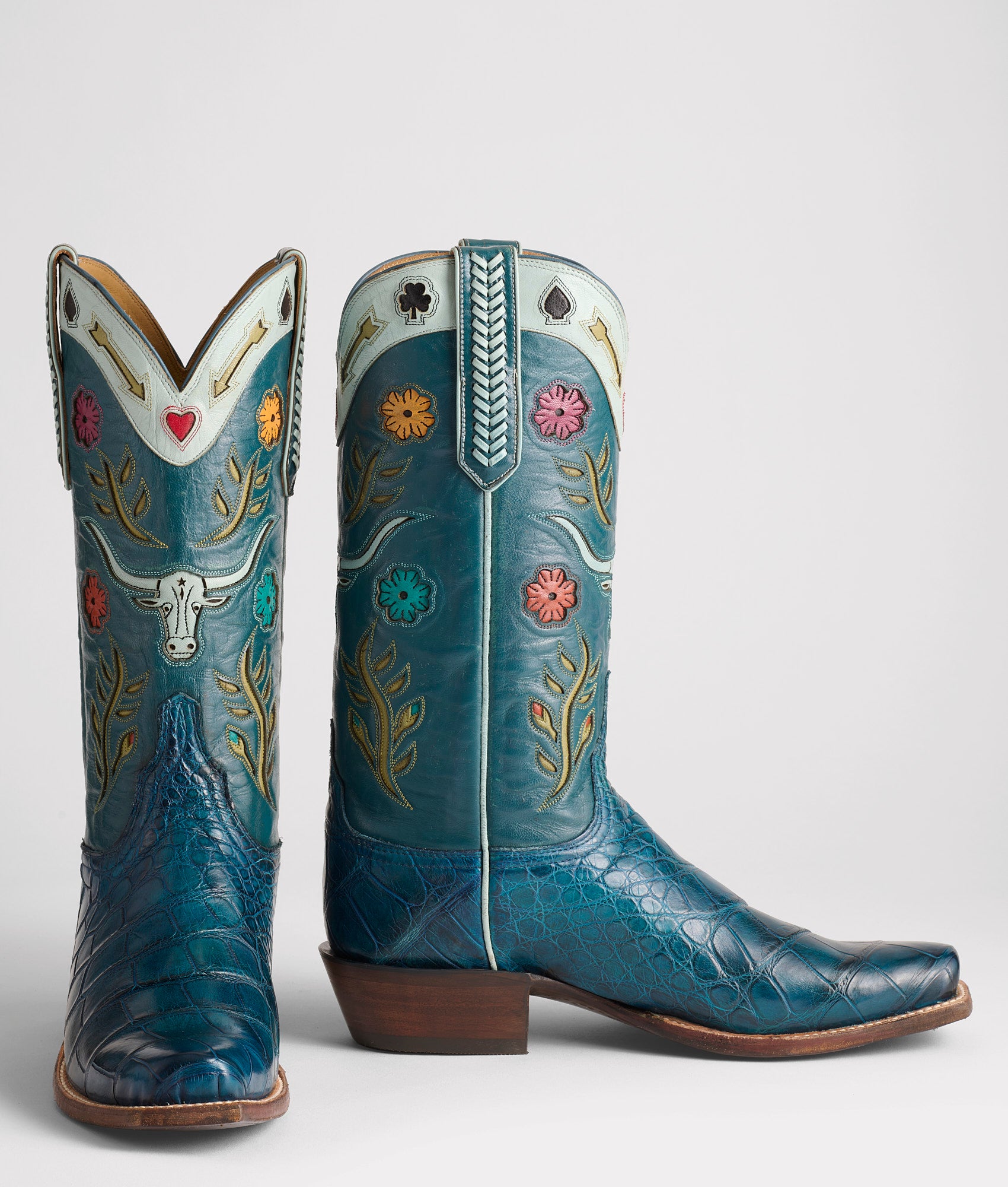 An heirloom. An ode. A statement told through craftsmanship. The Hat Tipper honors tradition with every cut and stitch. Its silhouette is a canvas for the time-tested artistry of our El Paso bootmakers. From collar to quarter. the Gallardo motifs tell the story of the West. saturated in rich color and layered with depth and texture. The 16-row. hand-laced Goat pull straps draw the eye down the cr??me side seam to the vamp. where every cut of Wild-Caught American Alligator reflects the respect our artisans show the process??hand-selected. hand-matched. and crafted with care. Respect begins with the work. not the words??Hat Tipper says more than the man will ever have to. Handmade in Texas.