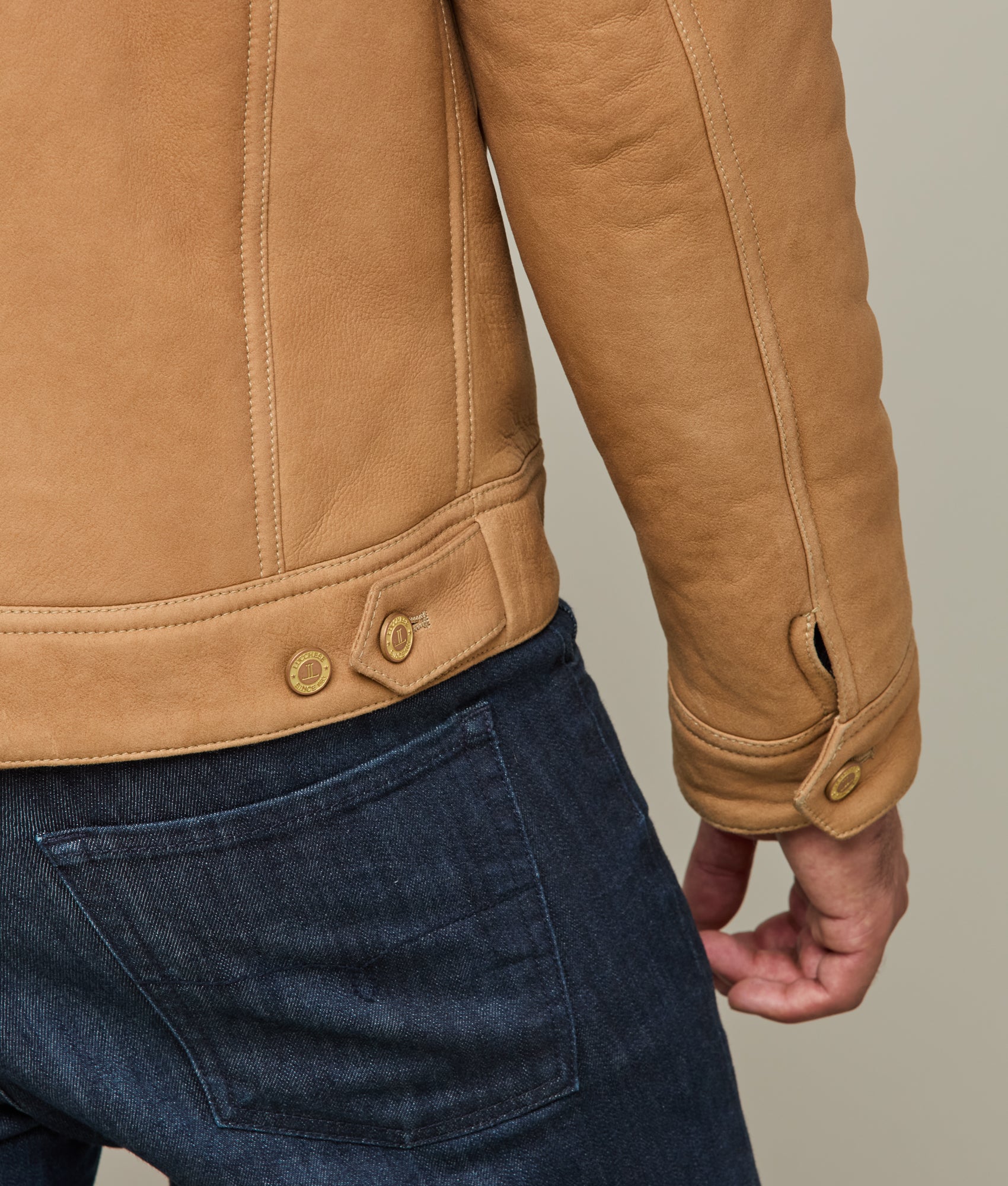 Crafted with meticulous attention to detail. the Shearling Trucker Jacket epitomizes sophisticated elegance. Its robust silhouette boasts a dual chest pocket arrangement. offering both functionality and style. Frontal buttons seamlessly integrate into the jacket’s design. complementing the structured shearling collar that defines the neckline. This rustic piece is a necessity during the colder months.