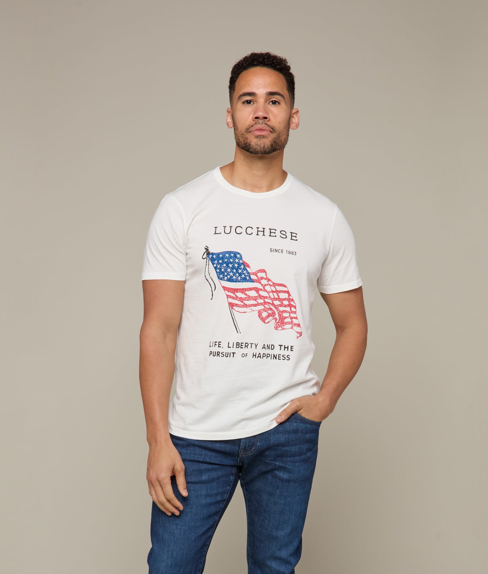 The design captures the essence of liberty in motion??a granulated American flag caught in the wind. yet full of life. Lucchese has a deep historical connection to American craftsmanship. much like the flag.
