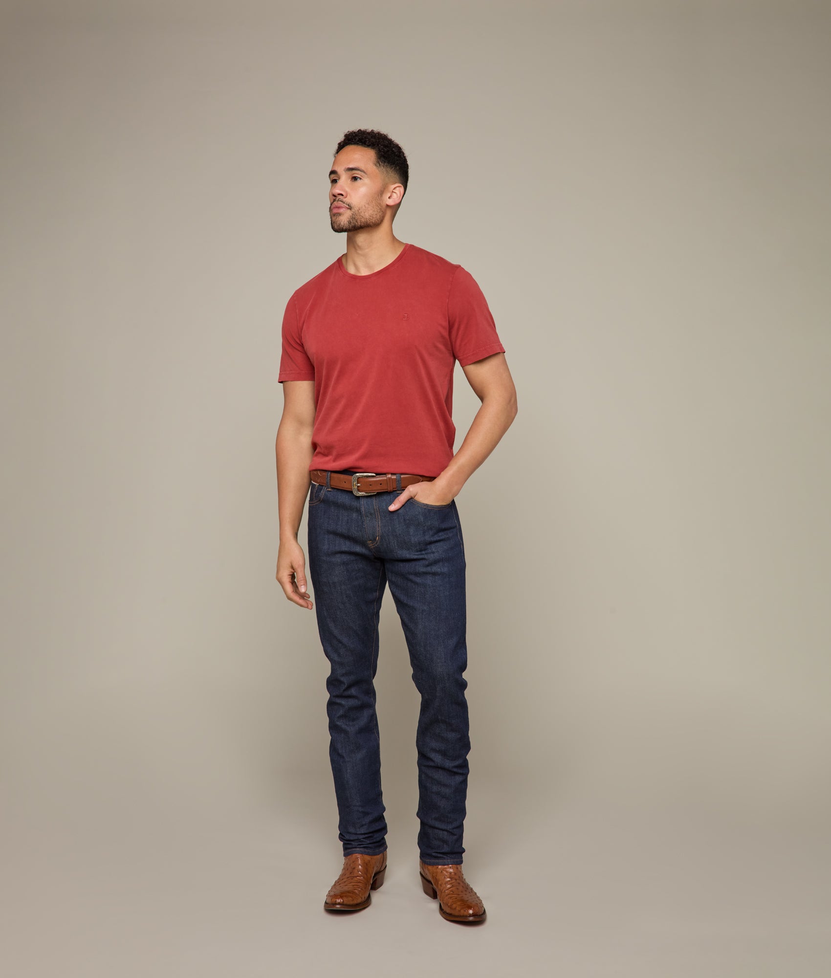 The short sleeve Lucchese Crewneck Tee walks a line of urban refinement. Tucked or untucked. cuffed on the sleeve. or under a flannel. this ultra-soft tee is the foundation piece of a daily ensemble.