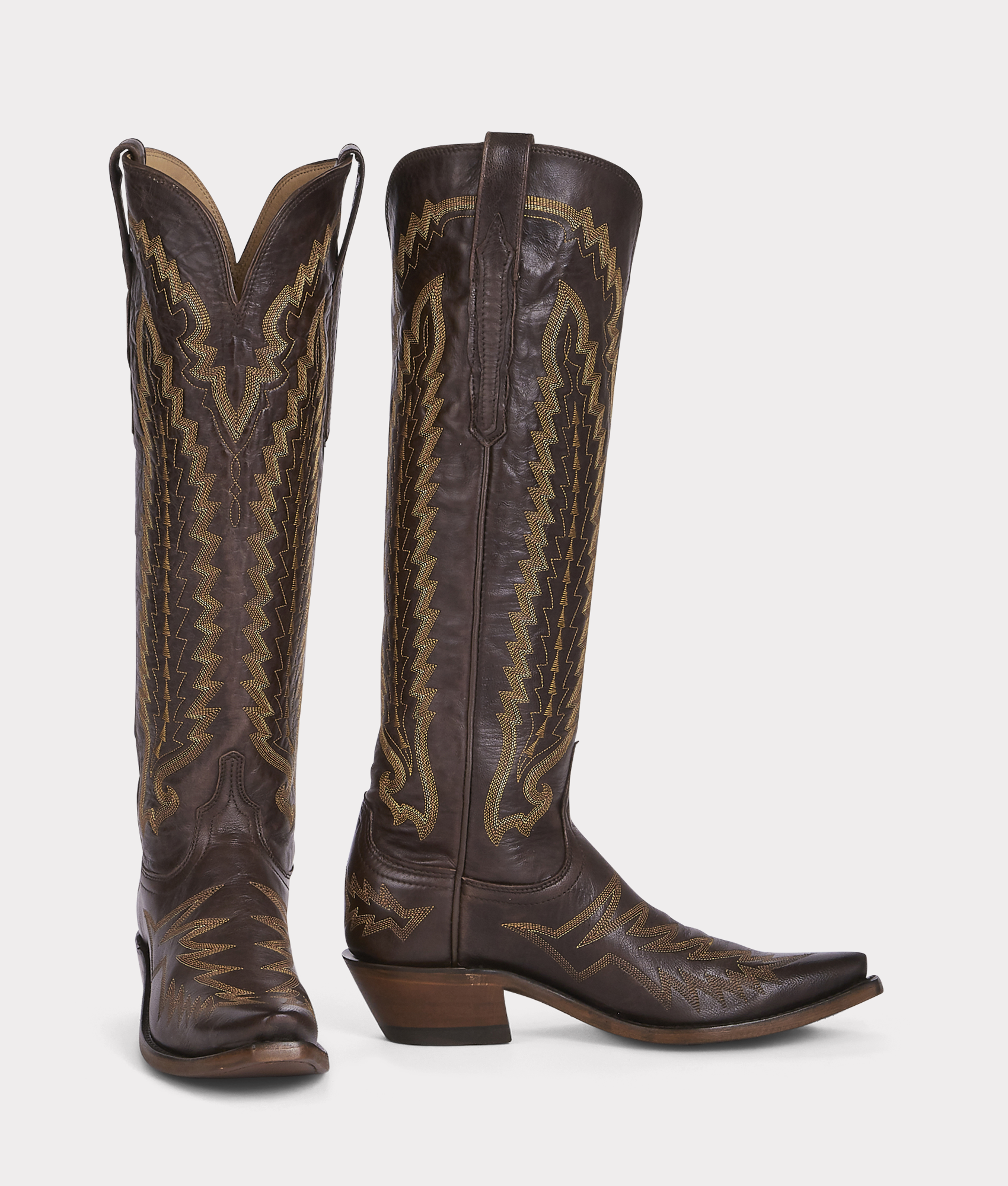 Our No. 1 bestselling boot for women. Priscilla walks an elegant line between timeless classic and cowgirl chic. The vintage-inspired Tioga stitch pattern harks back to yesteryear. but Priscilla is a boot built for today. This knee-skimming. pull-on silhouette handcrafted from Vero Goat leather deserves the spotlight under dresses and over jeans. Handmade in Texas.