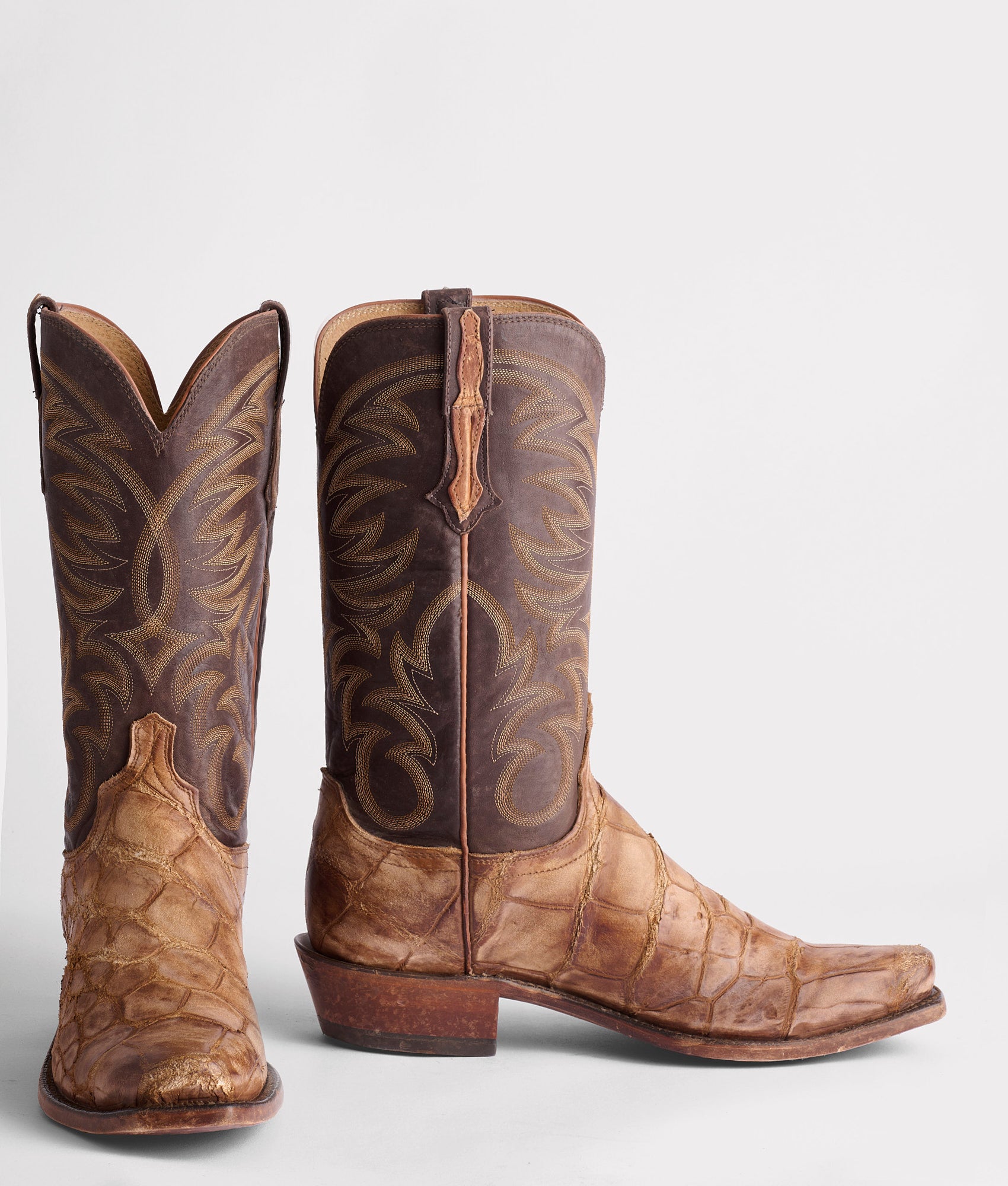 Benchmade by our coveted Texas artisans. the Rodney is a Western-styled boot crafted from wild-caught Giant Alligator leather. The vamp and quarter hues are unified by a 10-year stonewash patina and contrasting stitch pattern. Saddle ready. Life ready. Handmade in Texas.
