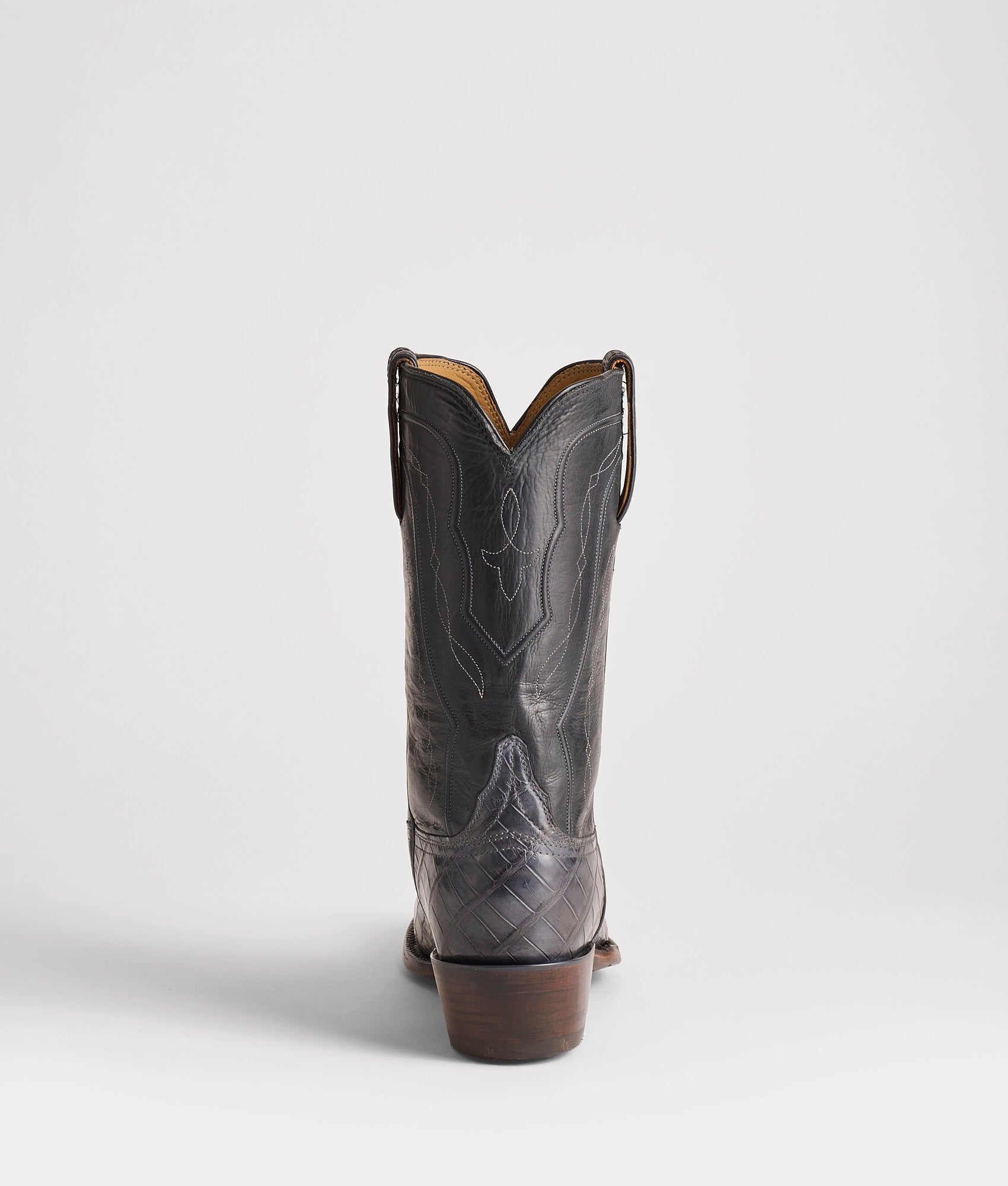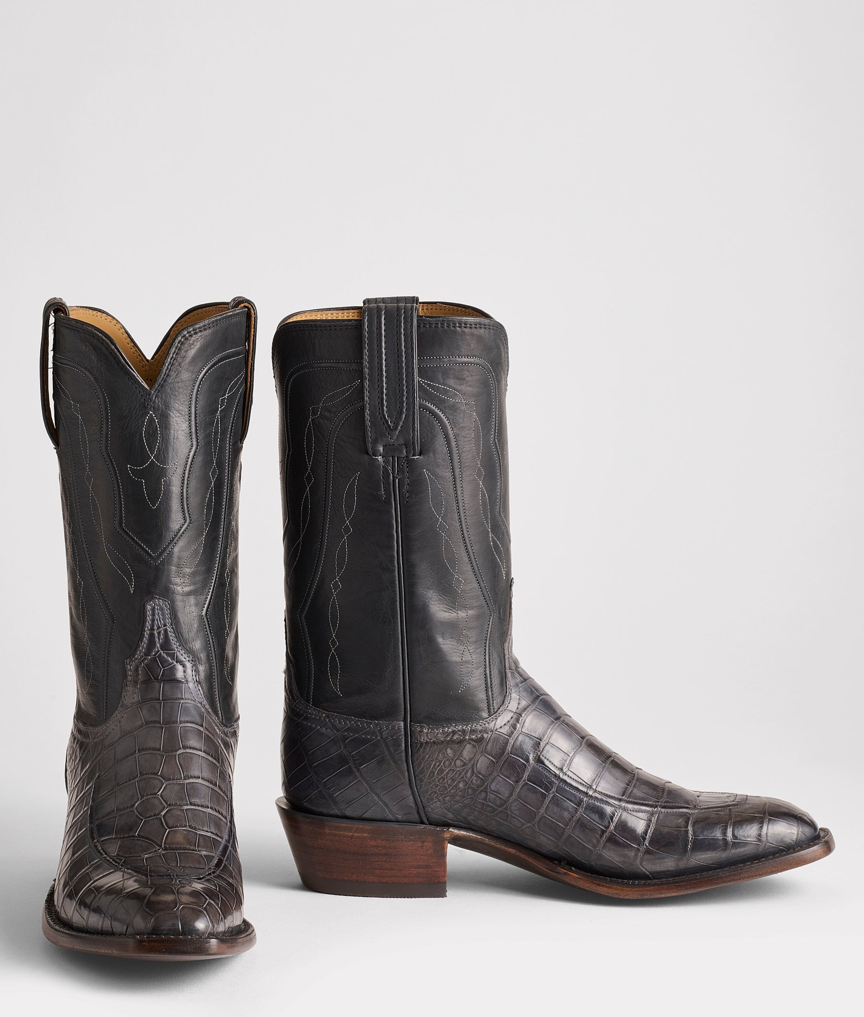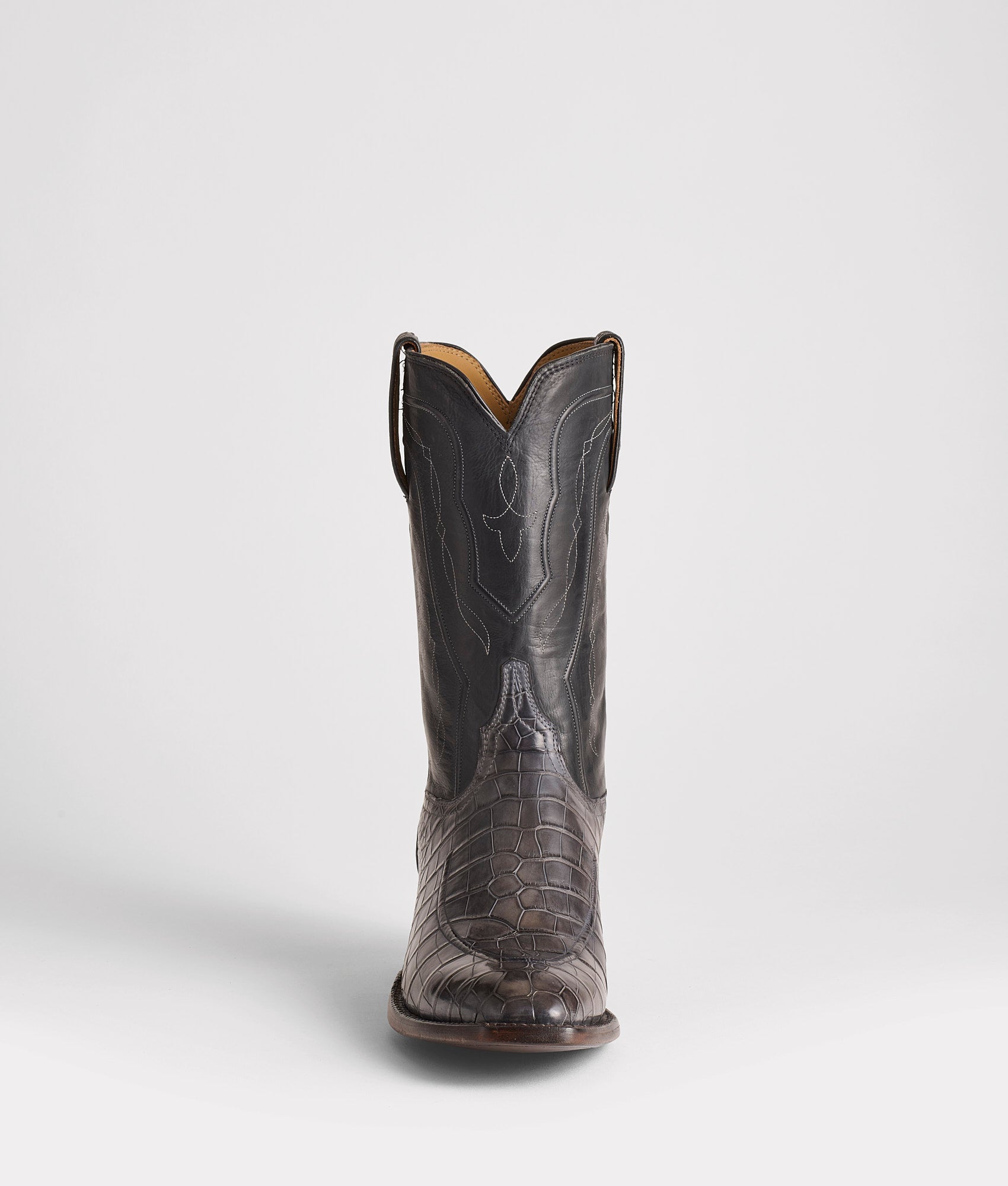 Part of Chris Stapleton’s Volume II collection. the Original Exotic is a style pulled directly from the archives just for Chris. Reminiscent of vintage Lucchese construction and design. the Original is slightly modified with shorter 11-inch quarters to provide that lived-in feel. The detailed Del Rio cord pattern on the quarters overflow into the vamp with a Moc Cord construction. These American Alligator vamped boots with Royal Calf quarters offer a one-of-a-kind fit and feel for the all-American man. Handmade in Texas.