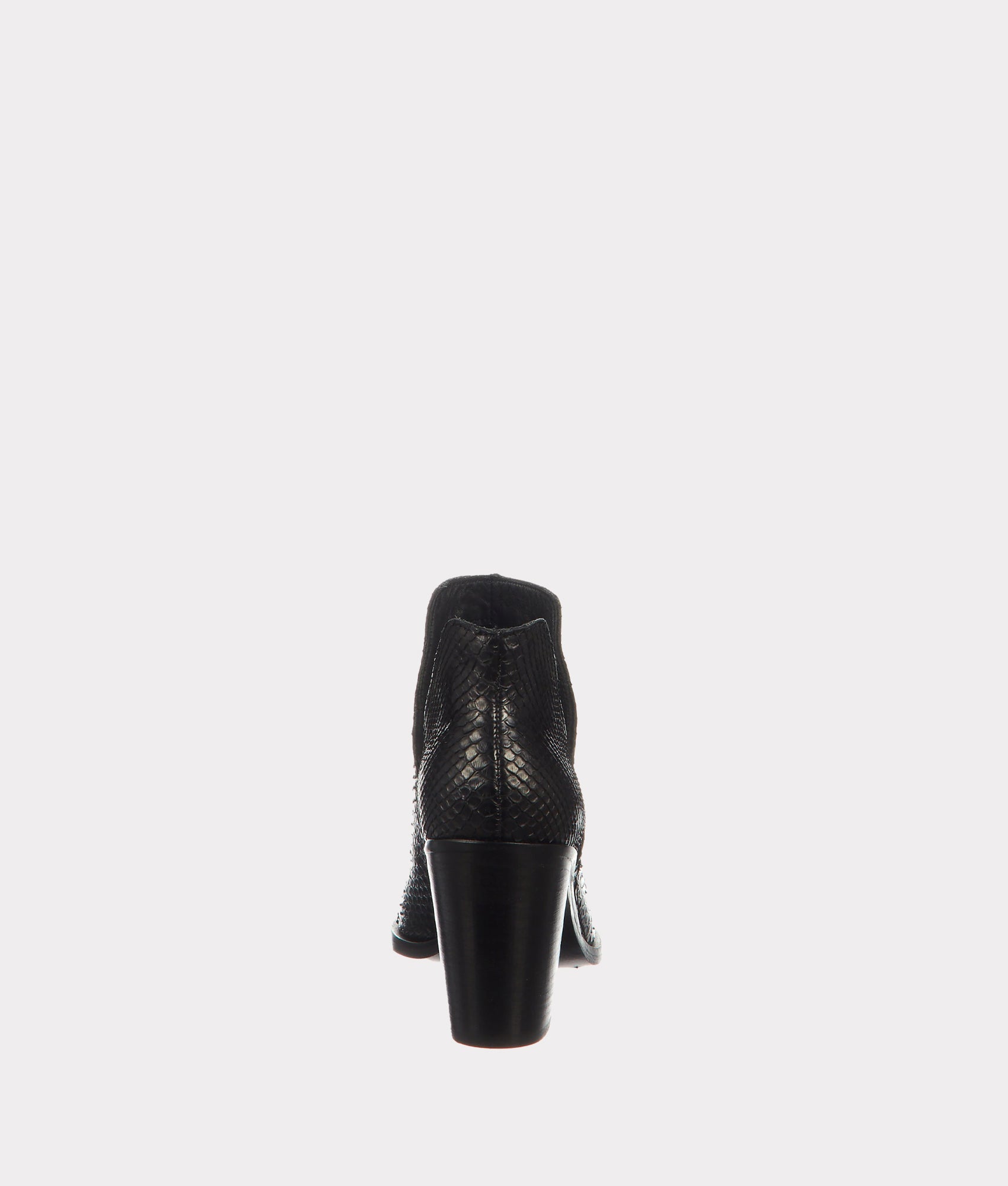 Striking describes Alma Exotic in so many ways. Handcrafted from premium python. this fashion bootie has a 3ΒΌ-inch heel and deep-V construction on both sides. In unexpected colors. it’s a beautiful balance of contemporary styling and Western panache.