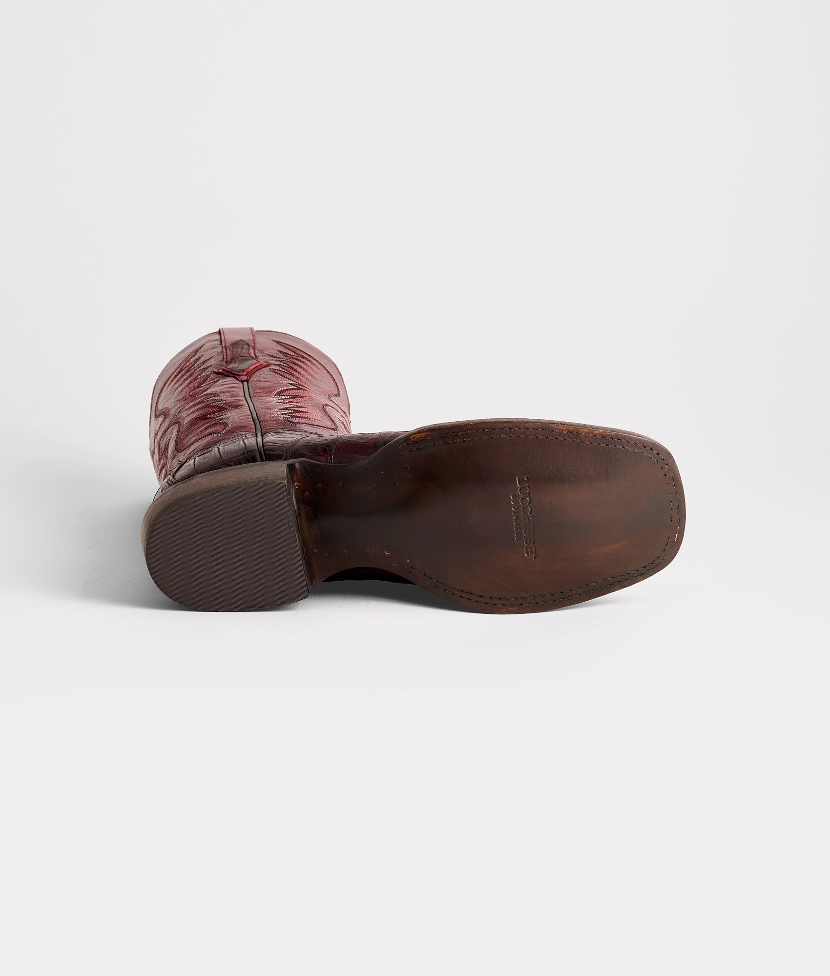 A modern reflection of Lucchese’s equestrian and cowboy legacy. the Bryan Exotic is a time-honored horseman silhouette. Constructed from bias cut Giant Caiman Belly and Ranch Hand leather. the Bryan Exotic offers a refined aesthetic – saddle. stage. and supper ready. Handmade in Texas.