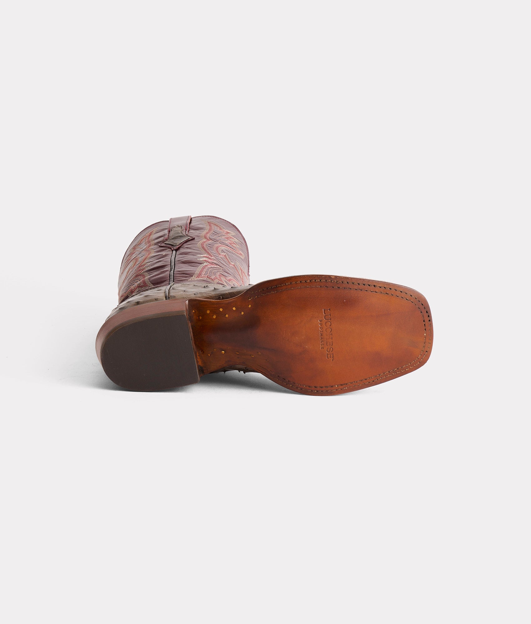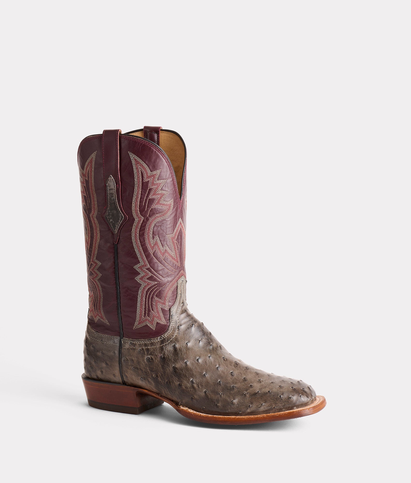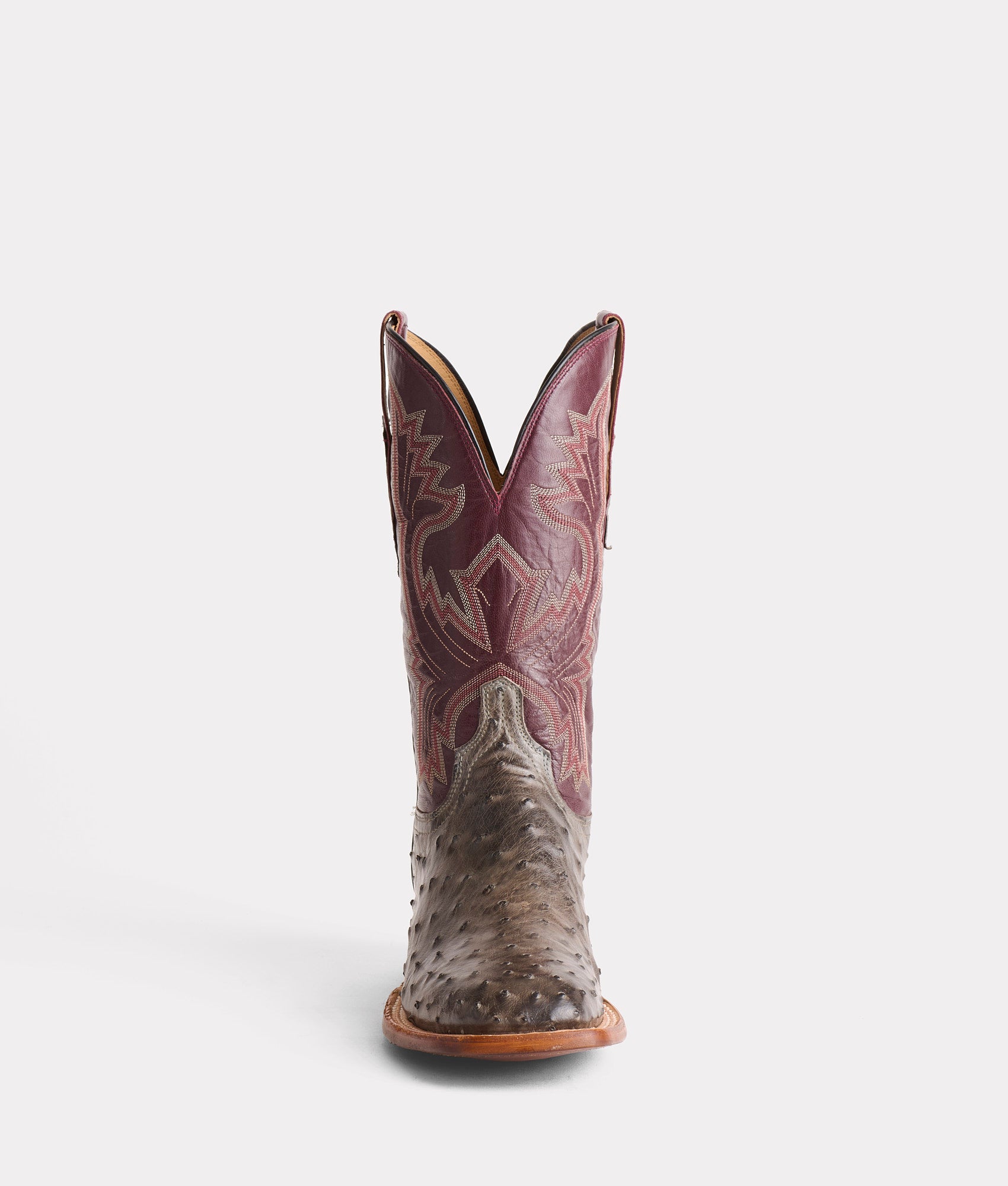 The Cliff is an all day every day horseman in jaw-dropping tones of Full Quill ostrich and Mad Dog goat leather. A tonal 10-row stitch pattern and a hand stained finish call for a toast and celebration to decades of a perfected craft. Handmade in Texas.