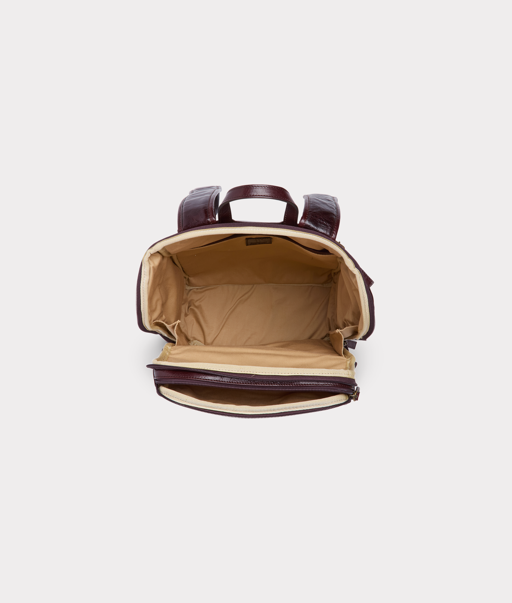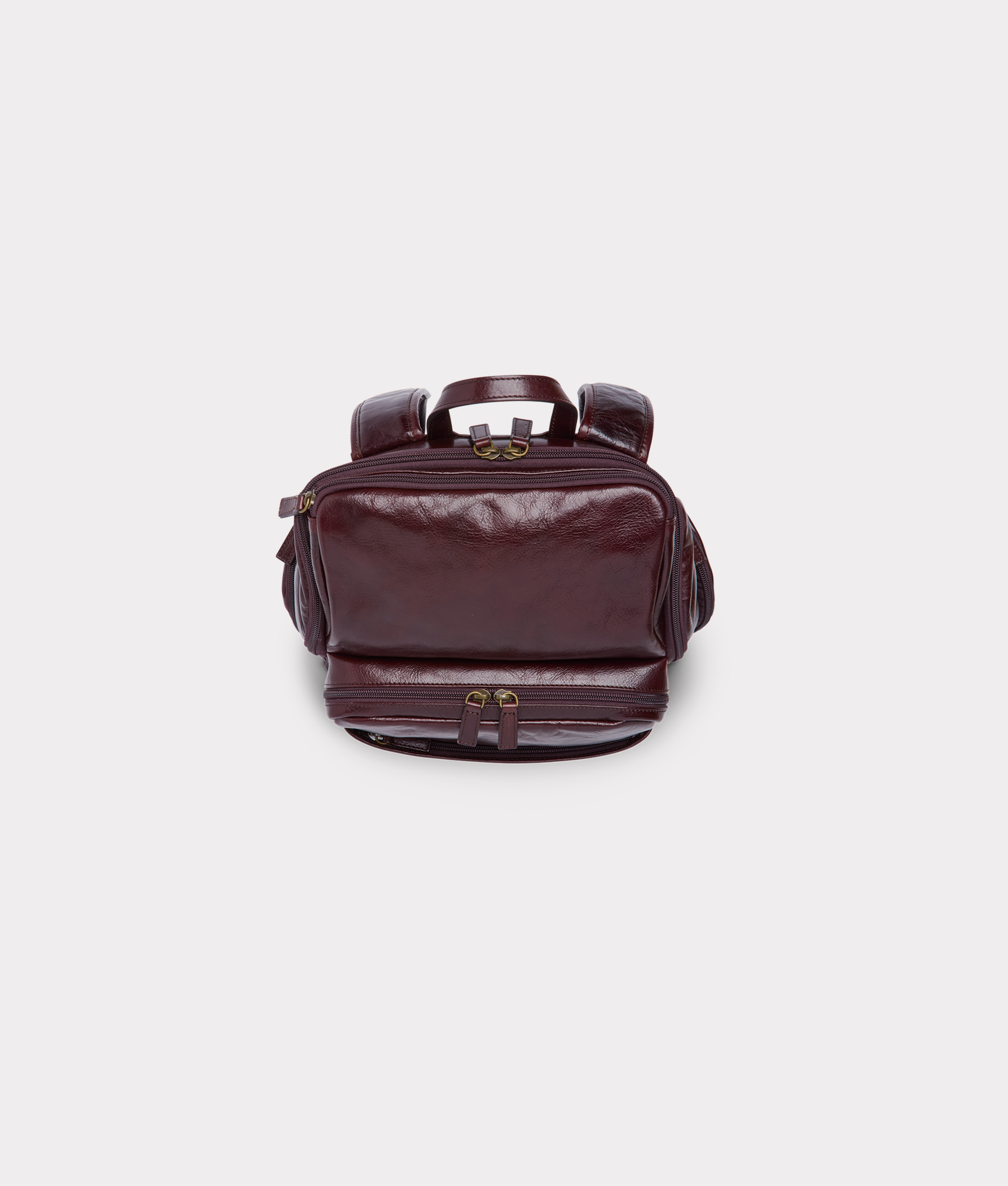 The Cosimo Backpack. named in honor of our second-generation bootmaker. exemplifies exquisite craftsmanship and timeless design. Constructed from Italian veg-tanned leather. this backpack boasts a rich. supple texture that develops a unique patine with age. Meticulously handcrafted in Italy. this piece showcases the attention to detail for the business and traveling man. The Cosimo Backpack combines robust functionality with sophisticated style. offering both durability and elegance for the discerning individual. Handmade in Italy.