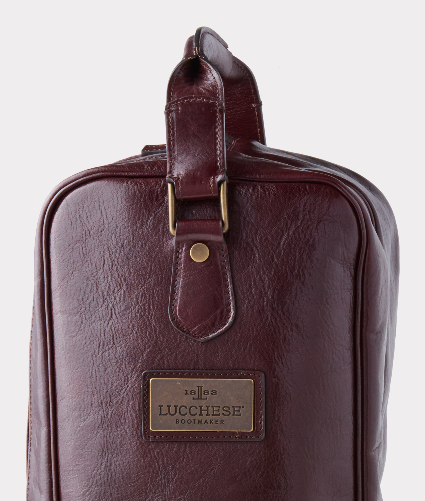 The Cosimo Boot Bag. named in honor of our second-generation bootmaker. examplifies exquisite craftsmanship and timeless design. Crafted from Italian veg-tanned leather. this refined boot bag offers a solution to carrying and transporting your favorite pair of Lucchese boots. Tailored to fit a single pair of Lucchese boots. this article with preserve the shape and itegrity of your lucky pair of boots. Handmade in Italy.