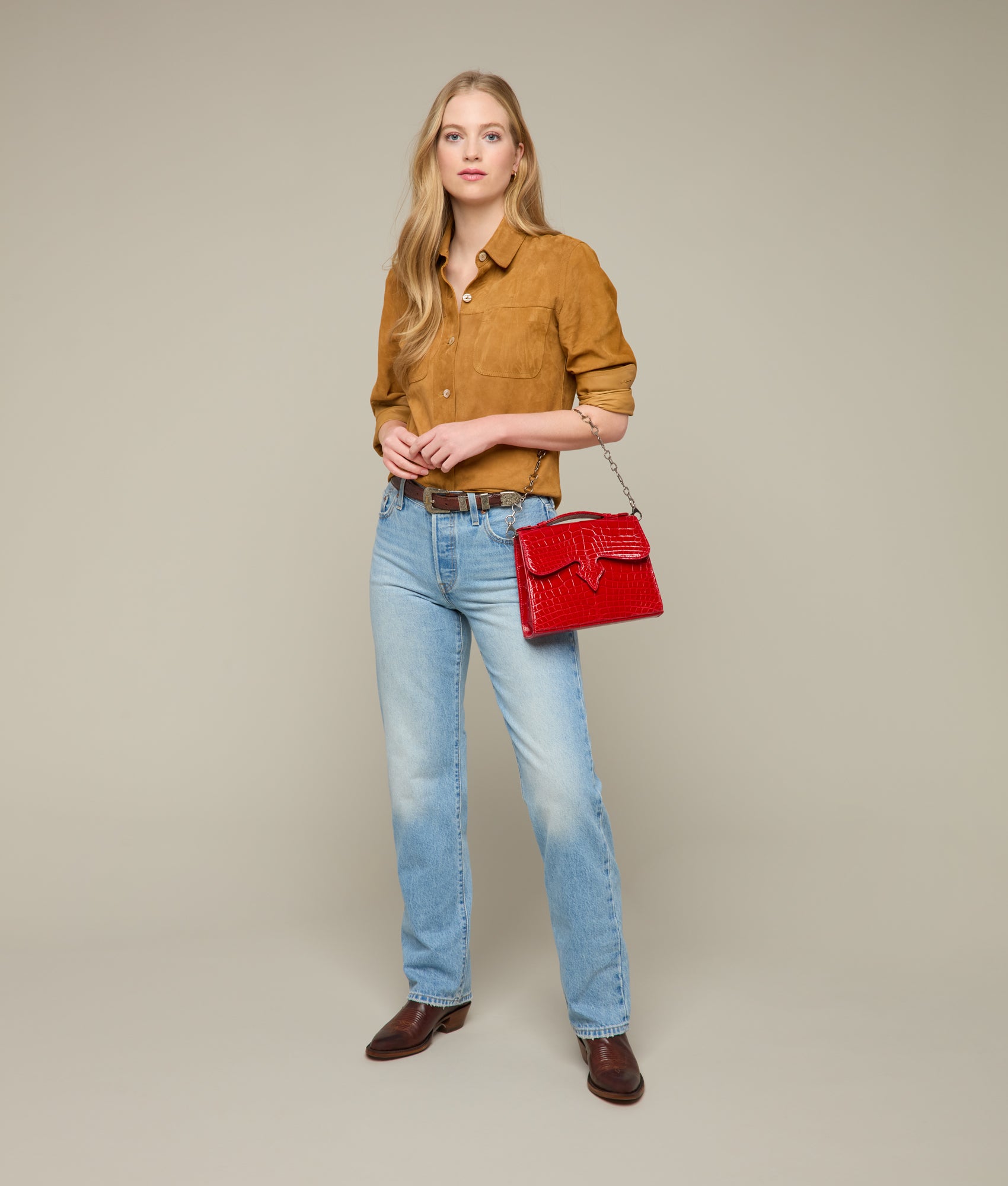 The Dolly Exotic Western Satchel is a truly unique piece that captures Lucchese’s innovation and reflects your personality. The classic Kennedy detail on the opening is a nod to vintage Lucchese. Mix and match this piece with a pair of your favorite boots and belt.