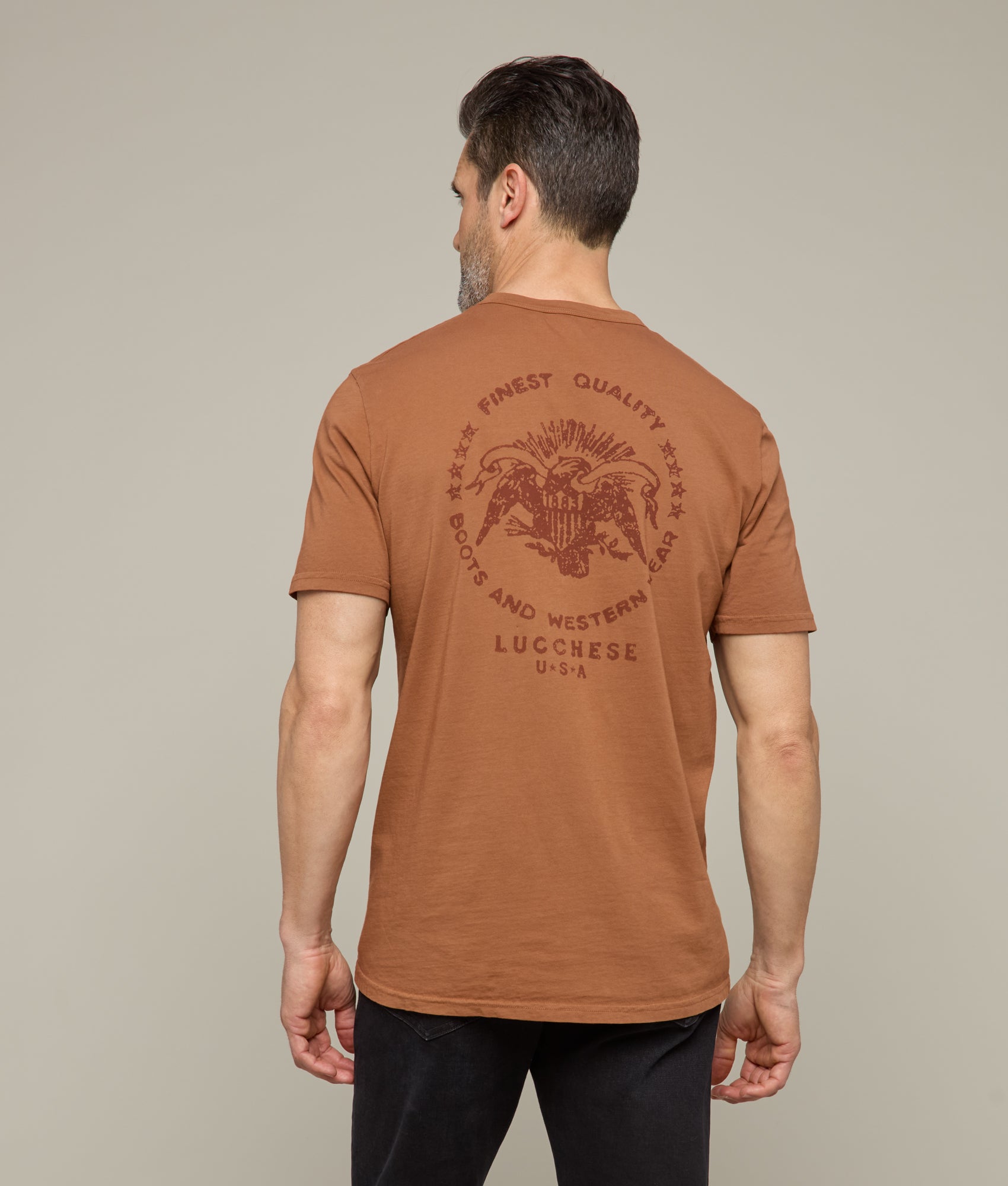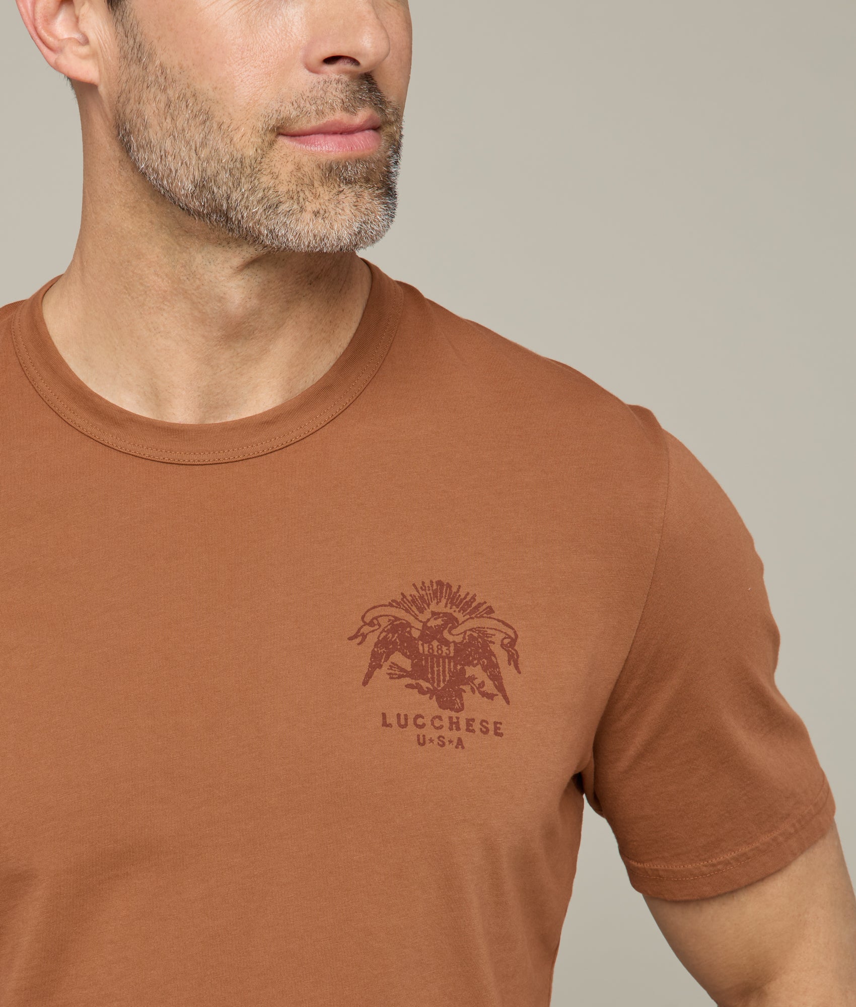 Crafted from 100% Pima Cotton. known for its silky softness and durability. this shirt features a striking Eagle Stamp graphic that evokes a sense of American pride and timeless style. The grainy print adds to its natural rugged nature. Designed and made in the USA. this tee represents both craftsmanship and heritage. Perfect for those who appreciate both design and quality. the Eagle Stamp Tee is more than just a piece of clothing??it’s a statement.