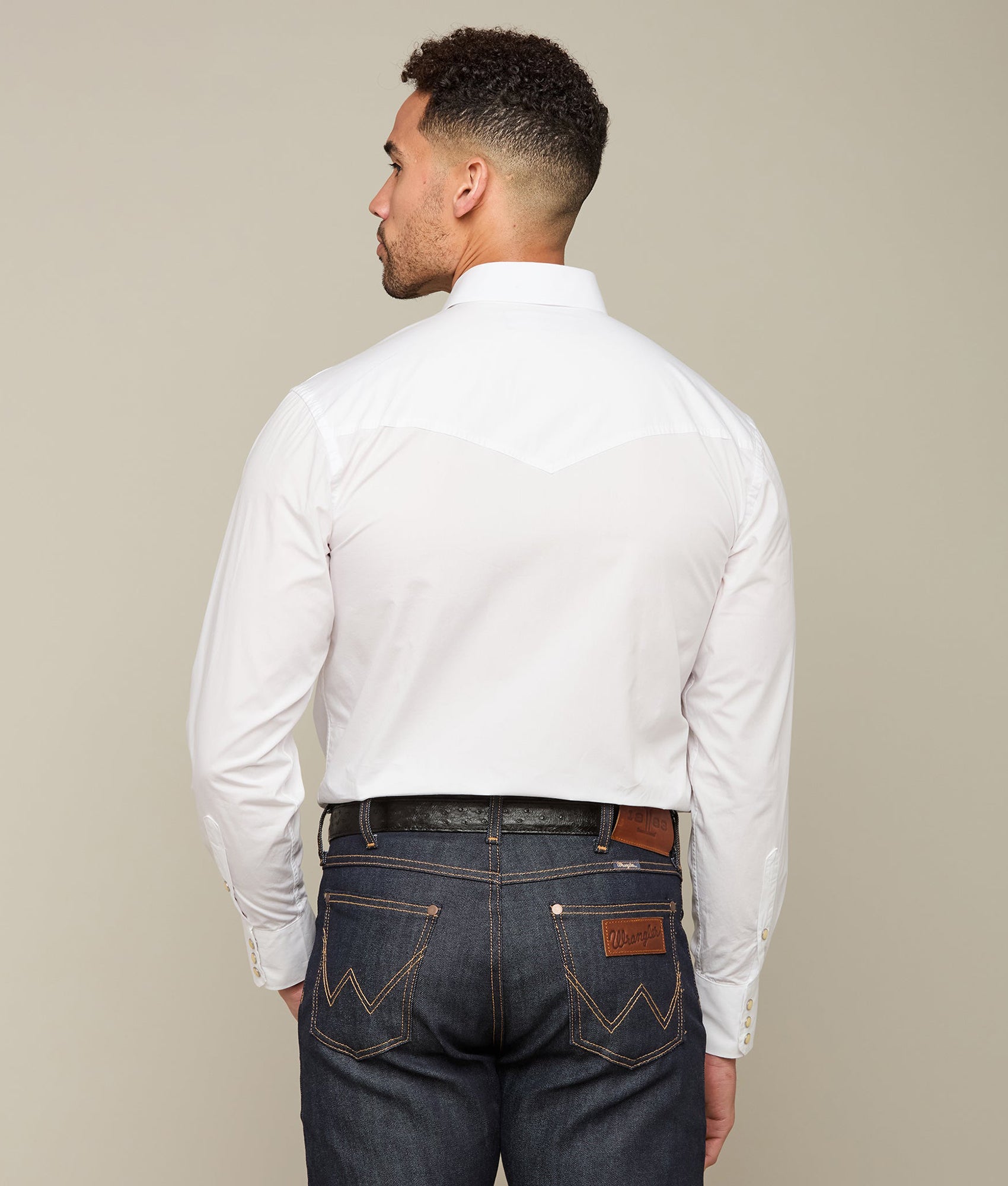 Named for our El Paso factory. this rugged. cotton Western shirt features a cowboy yoke in front and back with a subtle. embroidered mirrored-L emblem on the left pocket and lower placket. Classic cowboy fit.