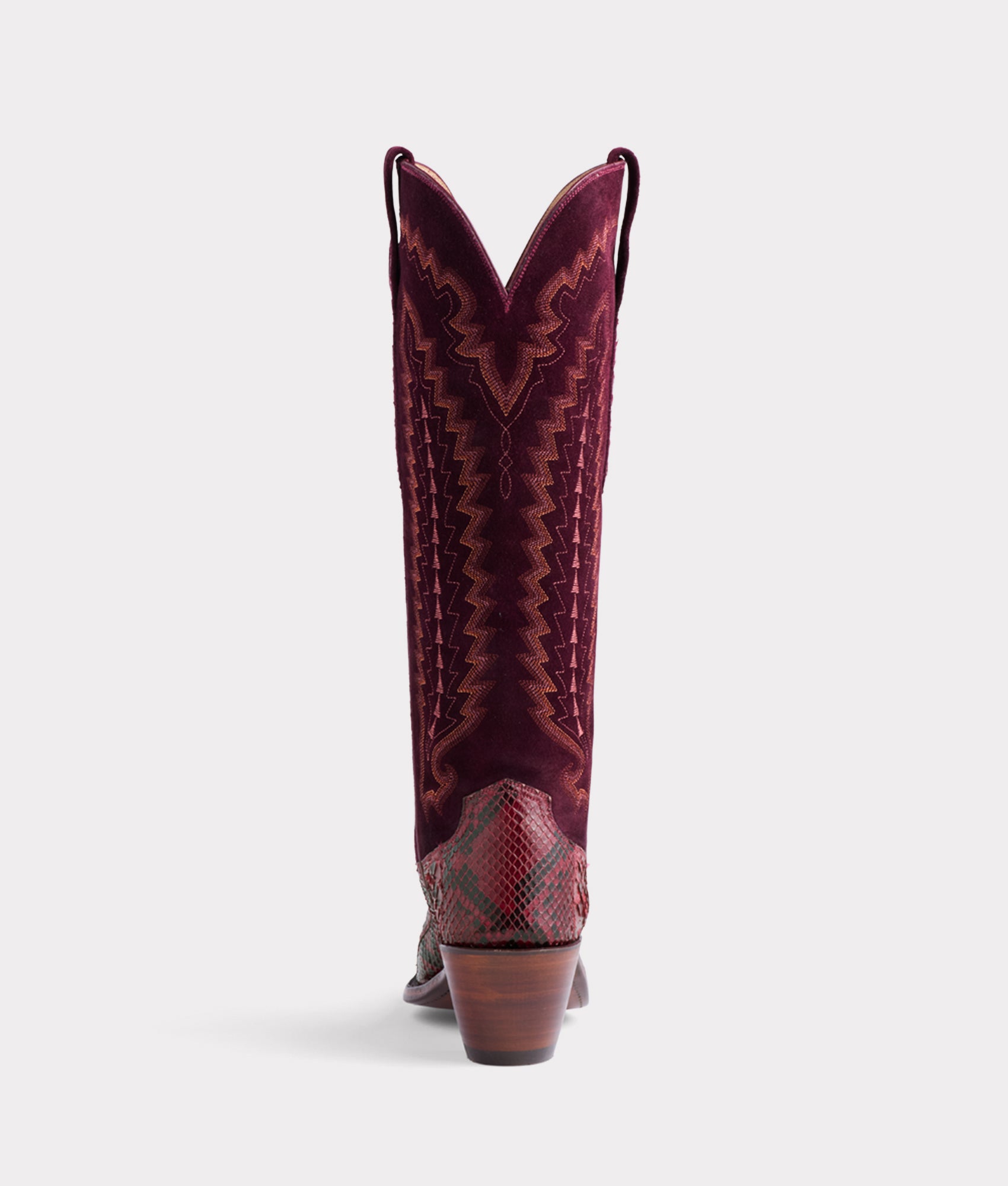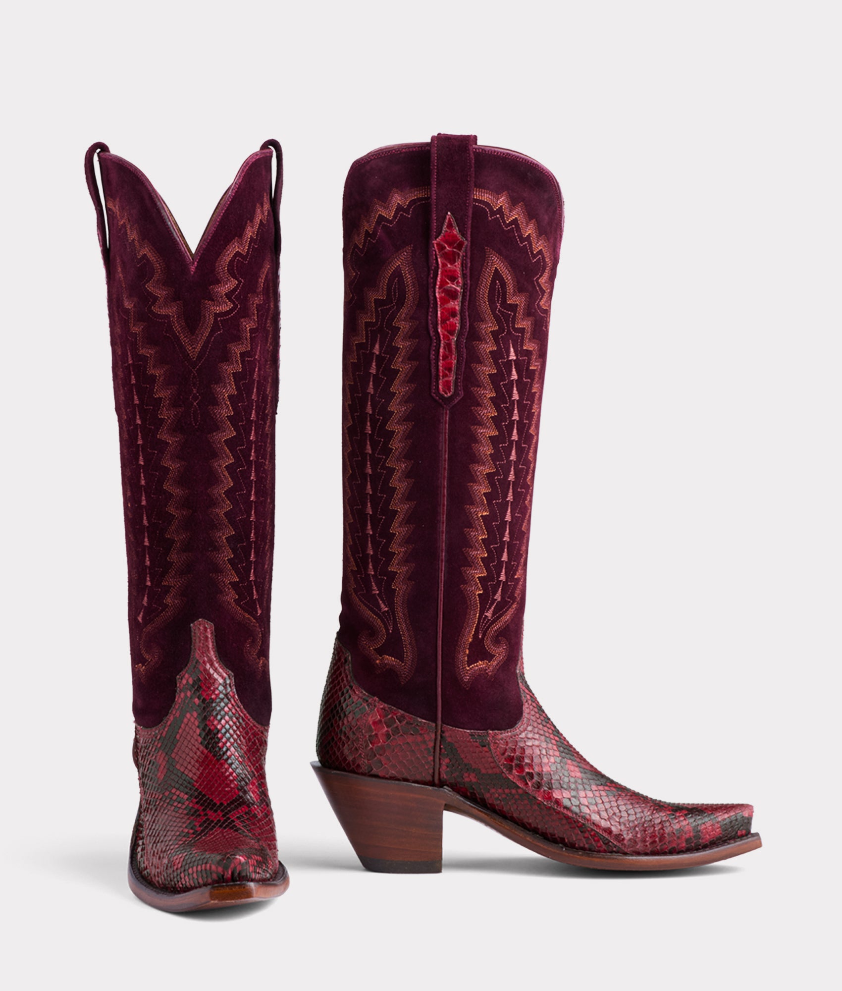 Setting the bar for design and fashion. Presley Exotic is the perfect combination of enthralling heritage and contemporary style integrated as one. Inspired after our best seller. Presley Exotic is carefully crafted by the world’s best artisans. Immerse yourself in her beauty. This is a 15-inch tall boot unapologetically saturated with rich tones and exotic flair. Handmade in Texas.