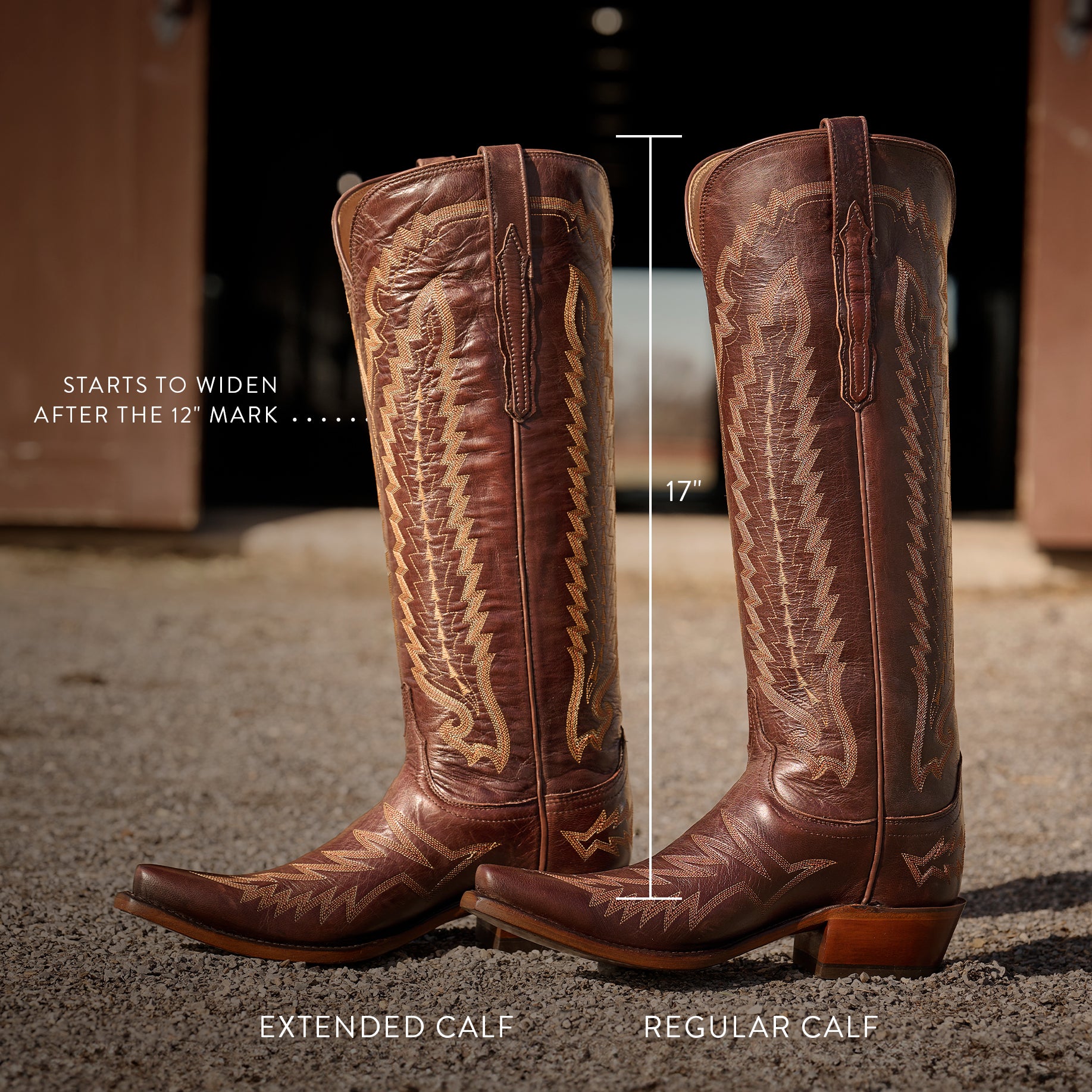 Our No. 1 bestselling boot for women. Priscilla walks an elegant line between timeless classic and cowgirl chic. The vintage-inspired Tioga stitch pattern harks back to yesteryear. but Priscilla is a boot built for today. This knee-skimming. pull-on silhouette handcrafted from Vero Goat leather deserves the spotlight under dresses and over jeans. Handmade in Texas.