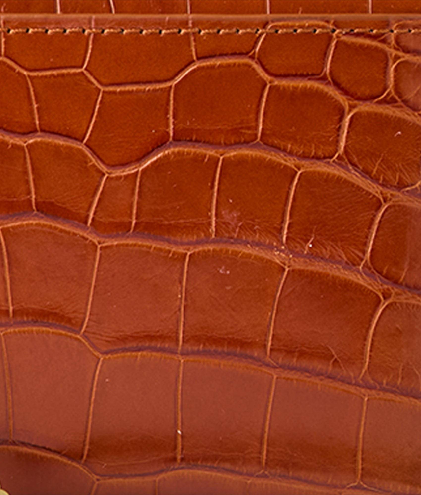 The Short Exotic Wallet On A Chain is an equestrian-inspired piece crafted from American Alligator leather. This accessory combines luxury with practicality through its sleek design features and petite silhouette. Perfect for hands-free convenience. all the wallet dressings will fit perfectly. Seamlessly styled with any wardrobe.