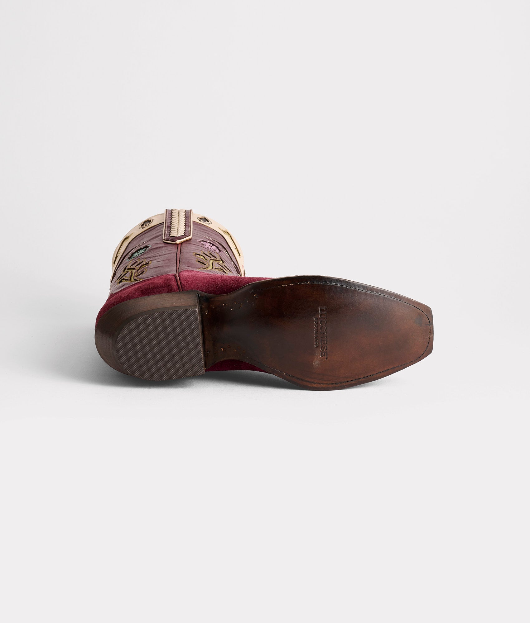 The Watchman is a quiet guardian??a hybrid style that keeps a low profile yet holds your gaze. Its muted base. crafted from smooth Ranch Hand leather and silky Italian Suede. is accented with pops of color in the Victorino inlay. This eclectic contrast reveals itself only when the moment calls. The Watchman merges the shaft height of a roper with the toe and heel of a western boot. creating a thoughtful balance between two classic silhouettes. Traditional cowboy hues anchor the vamp. refined and understated under denim. But cross your legs. and the quarter’s vibrant inlays reveal themselves??subtle. intentional. and quietly confident. This boot doesn’t seek attention but stands guard. protecting. preserving. and enduring the West. Handmade in Texas.