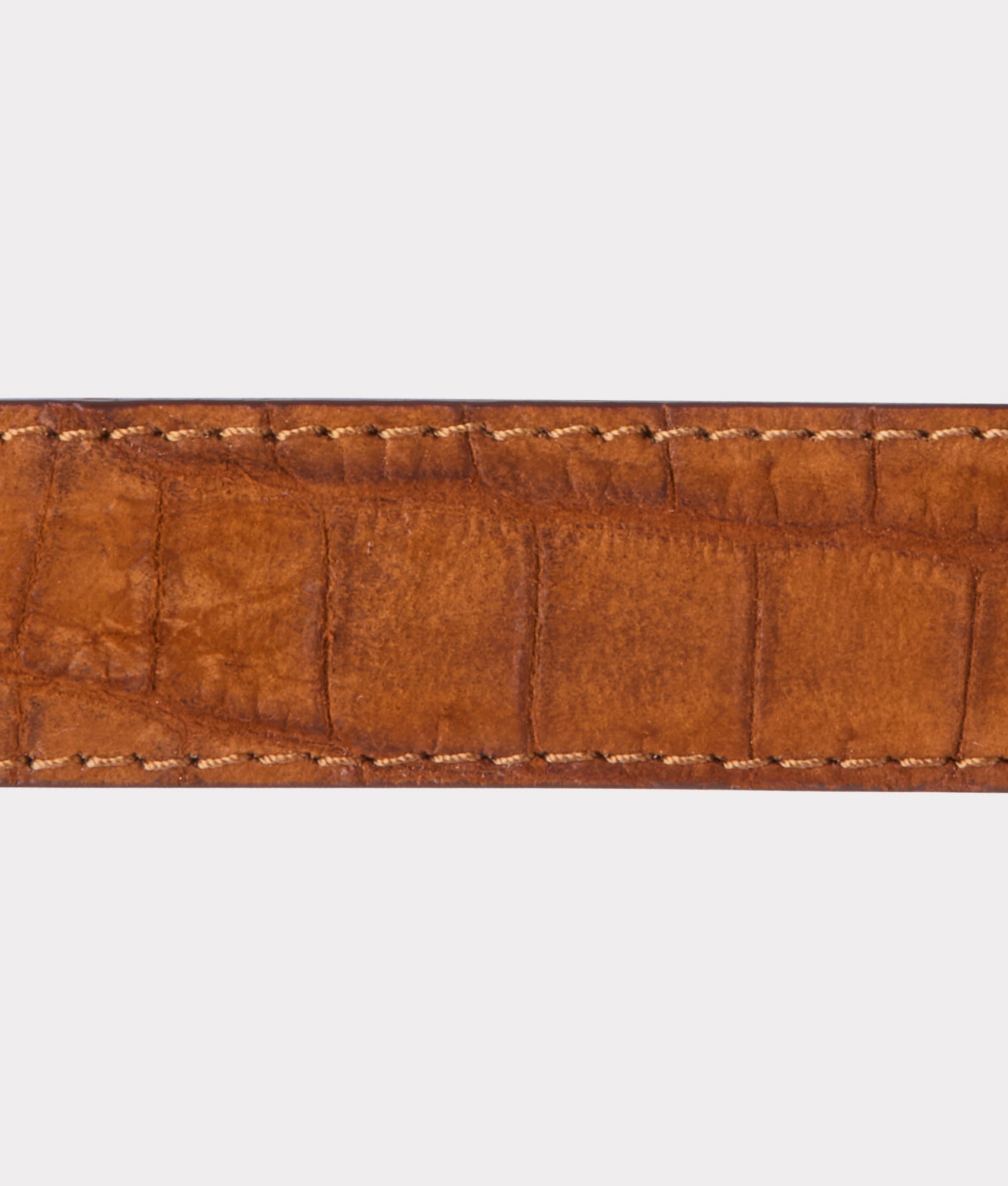This woman’s belt is sueded caiman with a classic 4-piece nickel-plated buckle set. A silver-plated tip and a mirrored-L on the buckle add just the right amount of shine. while the strap tapers gracefully from 1.25 to 1 for a flattering. feminine silhouette. It is a versatile statement piece??equally at home with denim or dressed up. and made to move with confidence. Handmade in Texas.